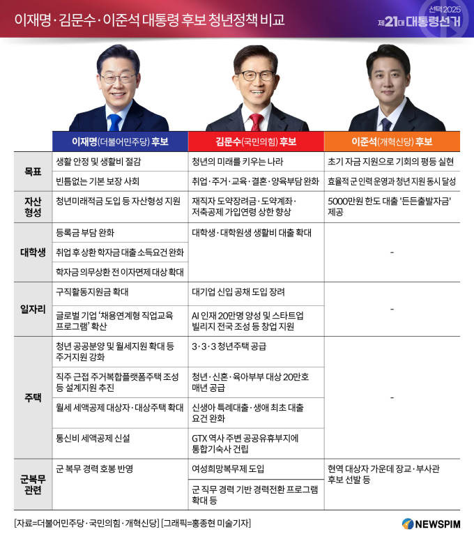 청년들이 가장 크게 신경 쓰는 일자리, 주거, 부채, 창업, 교육 지원 등에서 각 후보가 어떤 정책을 내세우느냐는 그들의 삶과 미래에 직결됩니다.
